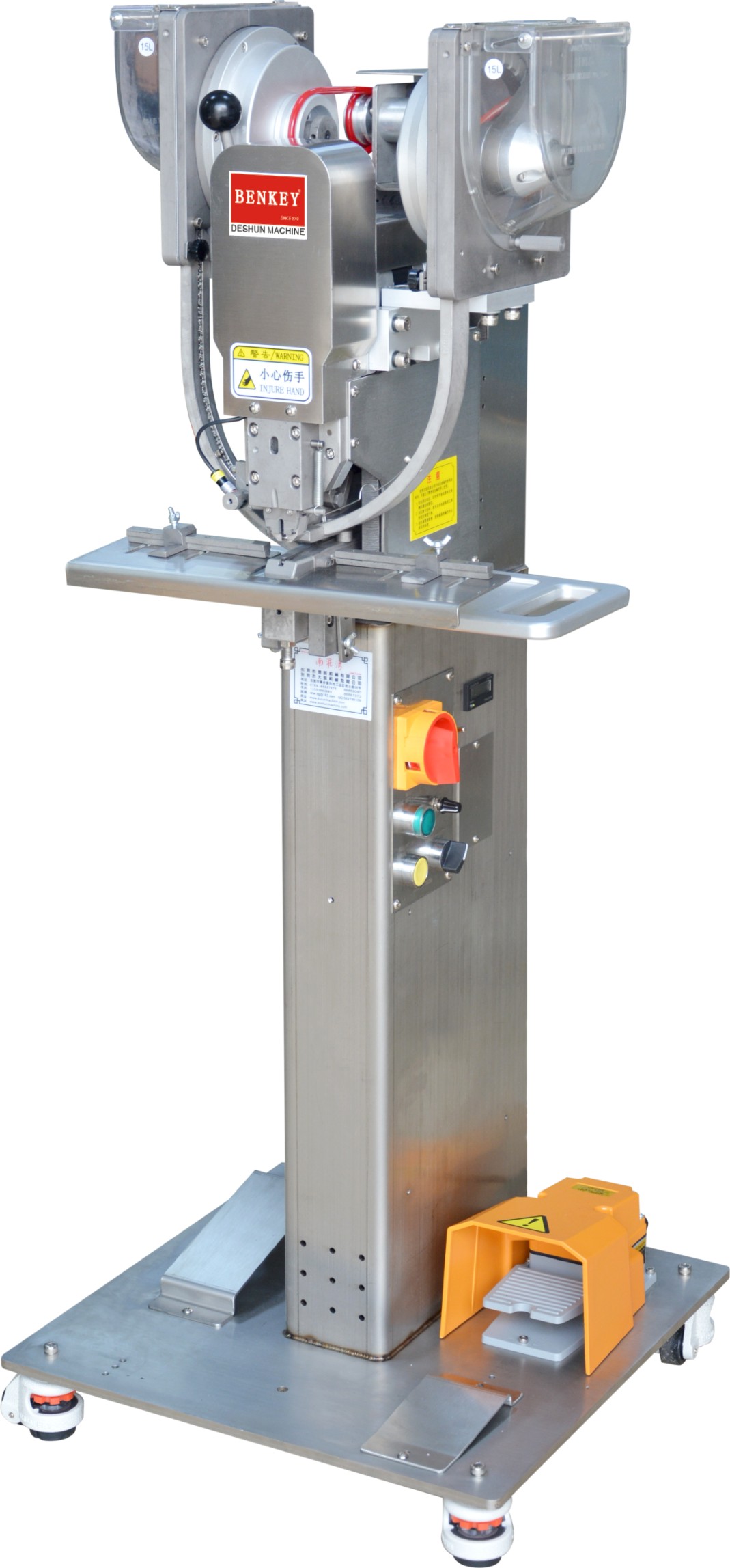 用途: 适用于各類五爪扣、牛仔扣、工字扣、金屬四合扣、塑膠四合扣、大白扣、車縫扣、西褲扣、撞釘、雞眼、急鈕等鈕扣制品裝訂。 說明: 把鈕扣放進對應的4個料鬥,開機會自動轉動料鬥,自動把鈕扣排滿軌道,自動把鈕扣送到上下模具,電動伺服馬達帶動,隻要踩下踏腳開關便可裝訂自如,簡單易用。上下模具對向運動,穿透力好。更換配件可以裝訂其它鈕扣。 安全: 伺服馬達帶動,PLC控制,裝配先進的防打手感應裝置,機器運作中如手指在模具下,機器會感應到手指,立即停機并自動恢複到停機位置,不會壓傷手指。 配置: 1、有CE認證的電子安全防打手裝置 2、鈕扣自動供應裝置(免手工放鈕扣,安全) 3、裝釘壓力緩沖自動調節器(布料厚薄不用調節) 4、自動計數器 5、可調亮度的鐳射燈對位裝置 6、有連打,單打2種裝釘模式選擇 7、有自動,手動2種運作模式選擇 8、可以調節的定位闆(五爪扣,四合扣适用) 9、裝有方便移動的腳輪 10、裝有人體工程學的左腳踏闆 11、采用可調速度,恒扭矩的伺服馬達 12、裝訂速度可調 13、送料馬達運轉時間長短可調 特點: 裝有歐盟CE安全認證的安全防打手功能。 |